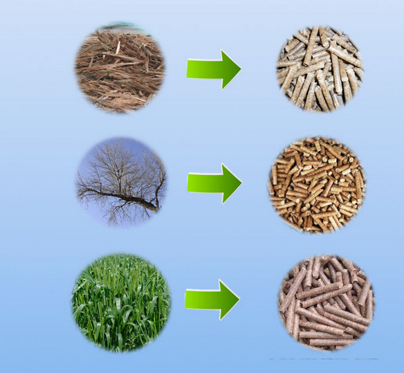 (注:一切可燃燒的固體生物質都可以做為生物質顆粒機的原材料)