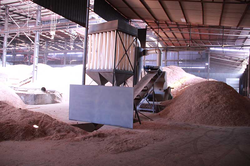 姜總、張總原材料是以鋸末、刨花、木材邊角料等材料為主,每天可提供100噸原材料。于同年8月中旬完成設備初裝,8月23日調試、生產成功!
