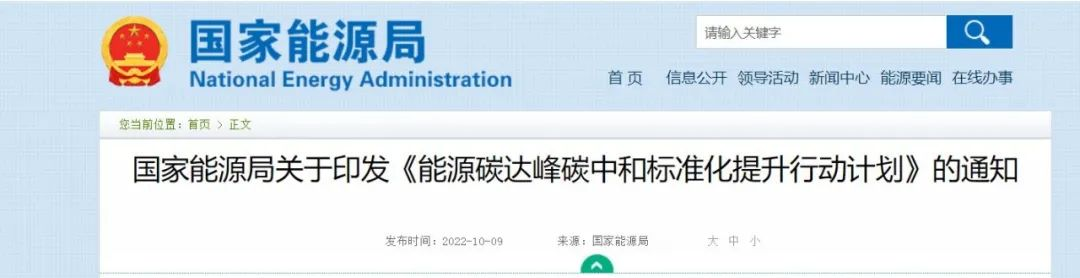 10月9日,國家能源局網站刊發《能源碳達峰碳中和標準化提升行動計劃》。